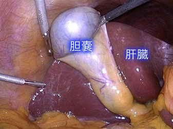 胆嚢摘出術の大半は腹腔鏡で行います。お腹を切り開いて行う手術(開腹手術)では、親指と人差し指を開いた程度の傷をあけますが、腹腔鏡は、3mmから1cmくらいの穴を数カ所あけて、そこから長い棒のようなカメラや鉗子を入れて手術をします。人間は、皮膚や筋肉の痛みに敏感ですので、傷を小さくすれば、痛みが小さくなる、そうすると、手術のあと、リハビリが早く進んで早く退院できるというわけです。腹腔鏡手術の最大の目的は、美容ではなく、痛みを小さくして早く回復してもらうためなのです。