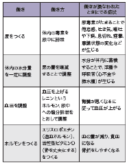 松井Dr: ひとことでいうと、腎臓は「水分と毒素を体外に排泄する」臓器です。大きく分けて4つの働きがあります。慢性腎臓病(CKD)になるとそのはたらきが損なわれることで症状があらわれます。働きと症状をまとめてみました。